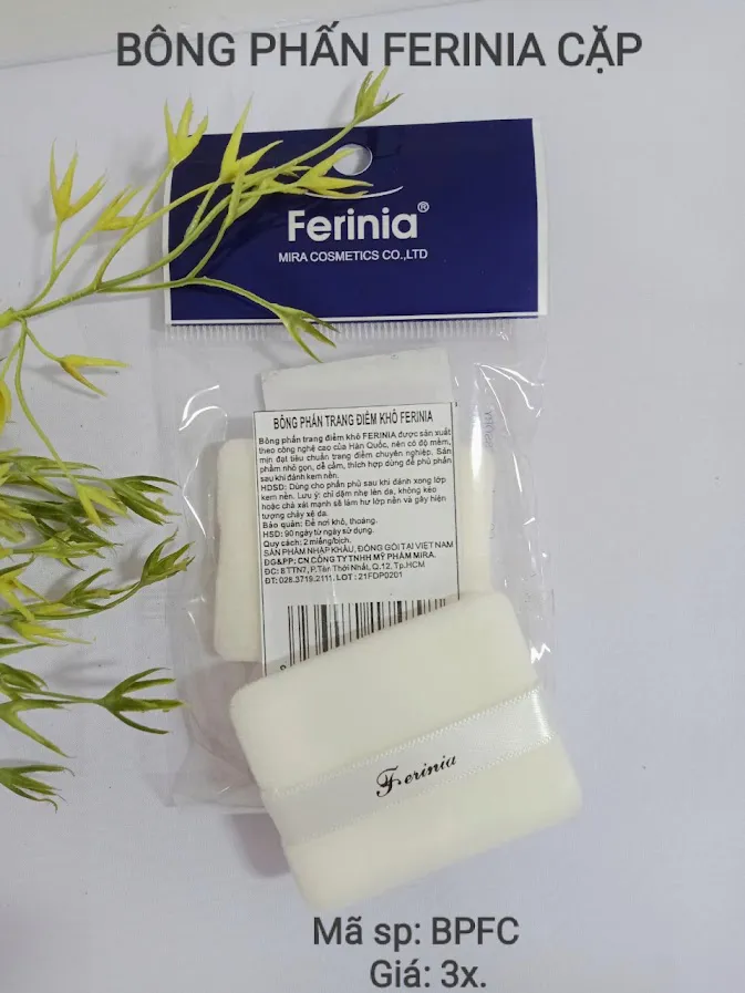 Bông phấn ferrina cặp là dạng bông đánh phấn khô là sản phẩm hỗ trợ trang điểm không thể thiếu khi make up .