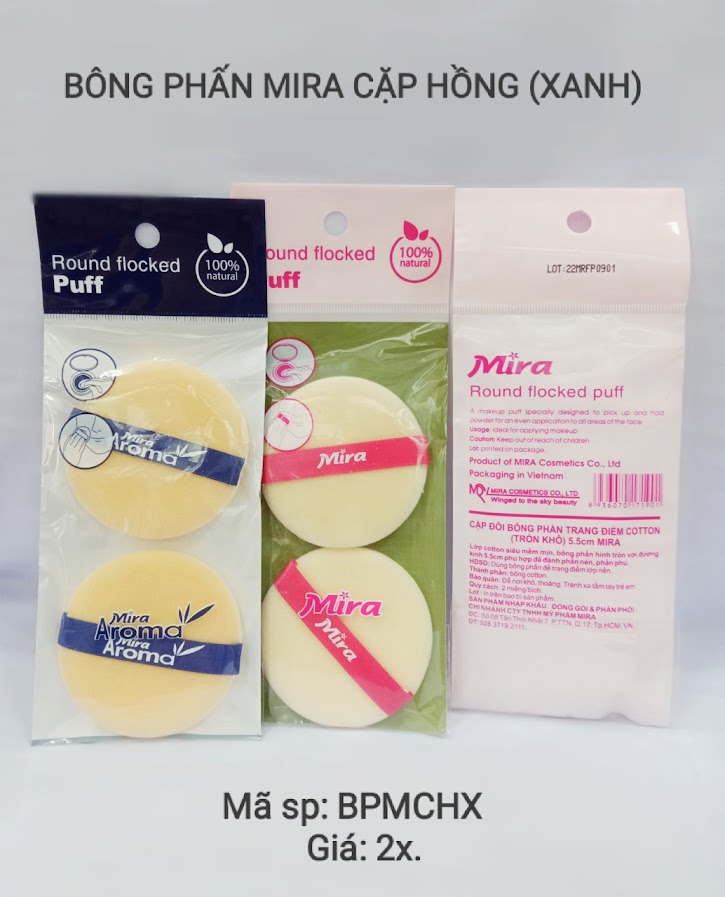 Bông phấn Mira cặp hồng (xanh) là  sản phầm hỗ trợ trang điểm không thể thiếu khi đánh phấn