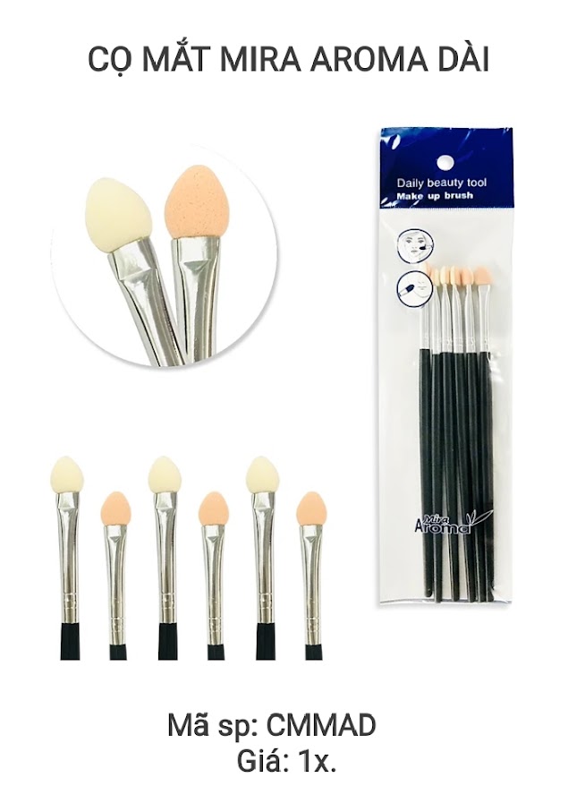 Cọ mắt Mira Aroma dài một thương hiệu từ hàn quốc là dạng cọ mút dùng để tán màu mắt có cán dài rất tiện và dễ dàng sử dụng , một dụng cụ không thể thiếu trong khi make up của các chị em và salon chuyên nghiệp.đó là cọ mắt Mira Aroma dài .