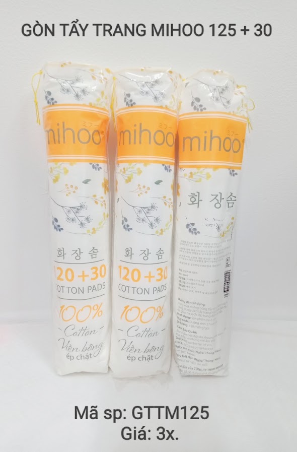 Gòn tẩy  trang Mihoo 125 m+30 là loại gòn 100% cotton có viền bông ép chặt một sản phẩm không thể thiếu trong bộ sản phẩm chăm sóc da và trang điểm của chị em phái đẹp.